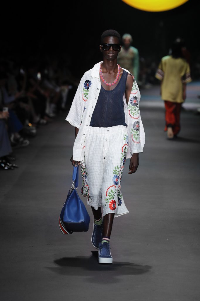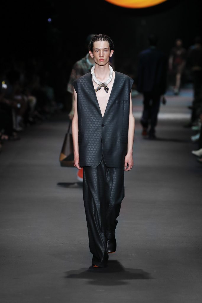 Yeni Etro koleksiyonu, işte bu sezgisel, bilimsellikten uzak düşünceyle ortaya çıktı. Rahatlığın ve ciddiyetin iç içe geçtiği koleksiyon, vücuda neredeyse hiç dokunmayan akıcı şekiller ve karışık ya da eşleştirilmiş ritmik desenlerden oluşuyor. Geniş blazer ceketler, bermudalar, tulumlar, tüylü süveter ve kazaklar, futbolcu formalarını andıran tişörtleri; uzun hırkalar ve paltoya dönüşen kalın battaniyelerle kombinliyor.