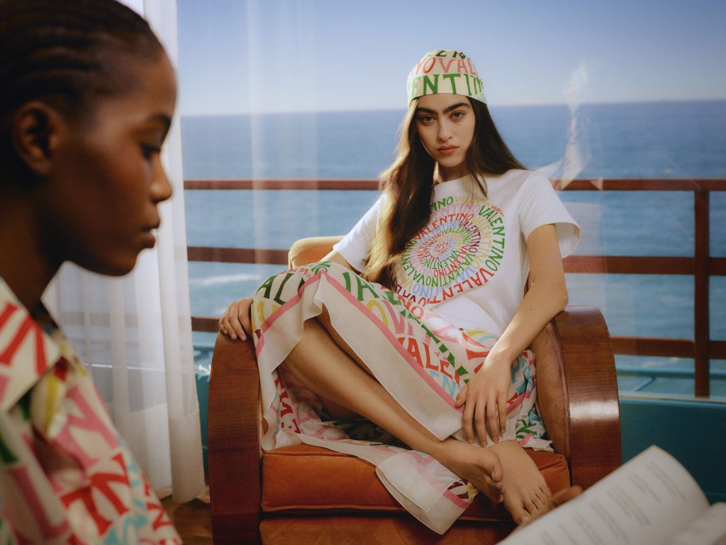 Valentino, seçkiyi tamamlamak üzere Maison’un klasiklerinden birine hipnotik bir yorum kattı. Markanın adını göz alıcı dairesel bir tasarıma taşıyan Valentino Loop, canlı tonlardaki renk yelpazesi ile crop toplar, şortlar, elbiseler ve clutch’larla kusursuz bir uyumla buluşuyor. 1971 Viva Valentino reklam kampanyası deseninden esinlenen tasarım, markanın güçlü görsel hikâye anlatımına olan tutkusunu pekiştirmek için geçmişe uzanıyor.